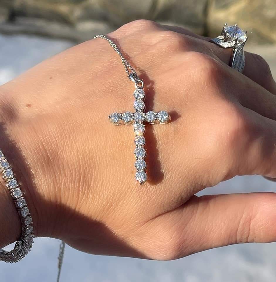 This 3.6 carat Moissanite cross is beyond stunning and makes the perfect gift for the spiritual. The stones catch the light in the most beautiful way.