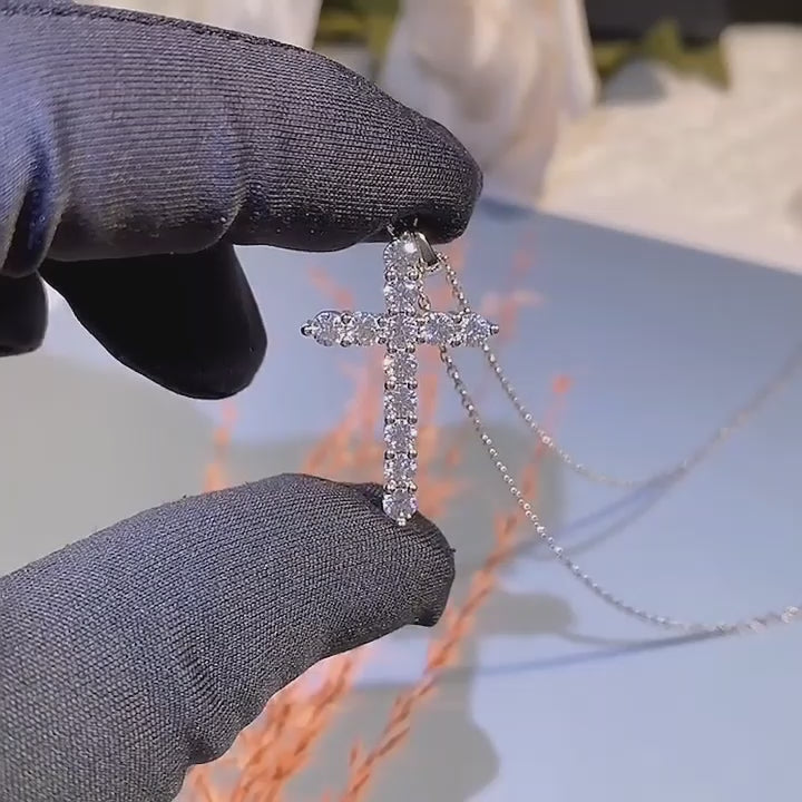 925 Sterling Silver Cross Moissanite Necklace
